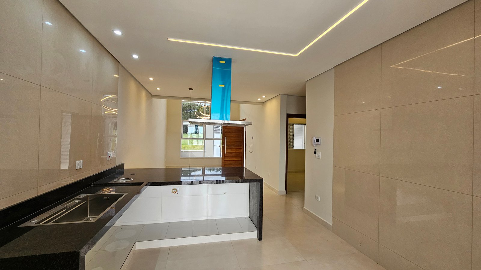 🔹 Esquadrias modernas na fachada e cozinha